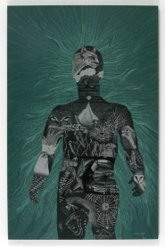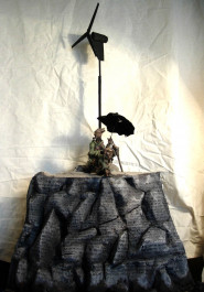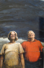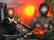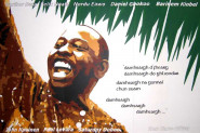 Mural on public display in the village of Ros Dumhach (Rossport), combining a well-known pose of the late Nigerian poet and peace activist Ken Saro-Wiwawith the Irish tri-colour and a translation into Irish of words from one of his poems.