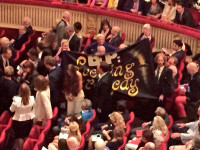A BP-sponsored performance at the Royal Opera House was hit by two simultaneous protests this Wednesday: a singing action inside the Opera House itself, and a banner invasion of the live broadcast in Trafalgar Square. Two young composers were ejected from the Opera House after unveiling a banner reading "BP: Fuelling Tragedy" and receiving warm applause from the audience; meanwhile, out in