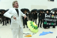 On 2nd May 2015, New York-based singing activists Reverend Billy and the Stop Shopping Choir joined forces with UK-based oil sponsorship campaigners BP or not BP? to recreate the BP Deepwater Horizon spill inside the British Museum. The unsanctioned performance filled the Great Court with singing, dancing, a giant